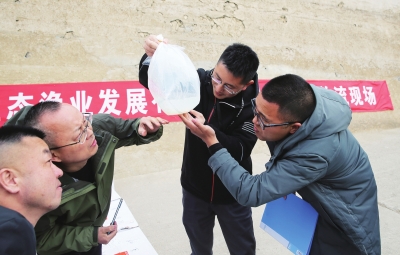 3月19日,广元市生态渔业发展有限公司在青川县沙州镇开展银鱼移植增殖活动,向白龙湖投放银鱼卵约2亿粒。这也是今年1月1日0时广元开启长江流域重点水域10年禁捕后,首次在白龙湖上开展的银鱼移植增殖活动。图为相关工作人员察看银鱼卵情况。 广元日报全媒体记者唐彪摄