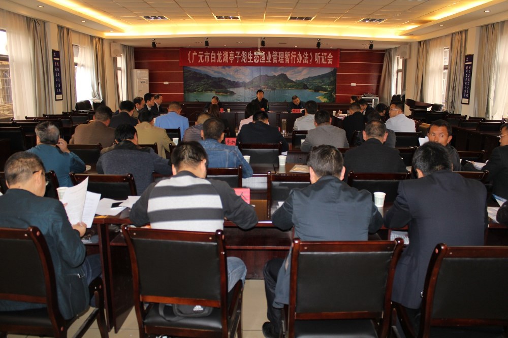 为更好的保护白龙湖亭子湖生态环境,充分利用“两湖”良好的水资源优势,规范渔业秩序,发展生态渔业,10月12日,我市召开《广元市白龙湖亭子湖生态渔业管理暂行办法》听证会。