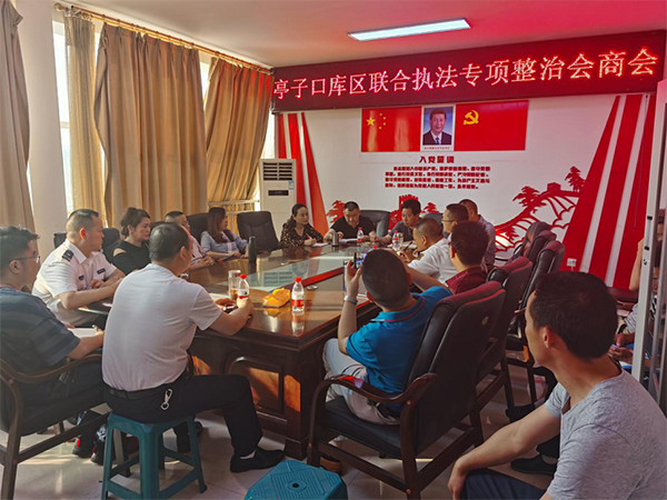 5月20-22日,全市“两湖”联合执法专项整治行动在剑阁县店子至樵店段多点水域举行。行动前,在店子镇政府召开了亭子口库区联合执法专项整治会商会。