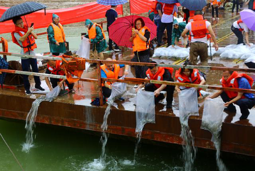 本次增殖放流共放流鲢、鳙等鱼苗151万尾,其中我公司投放长吻鮠、中华倒刺鲃(清波)、白甲、华鲮、岩原鲤等名特优贵鱼种40万尾。