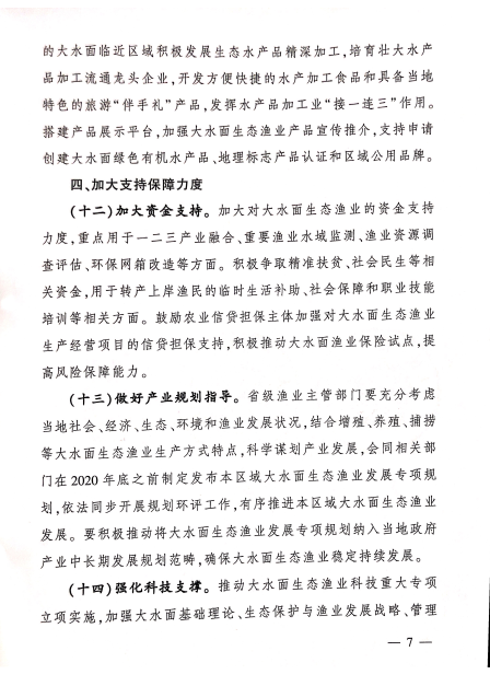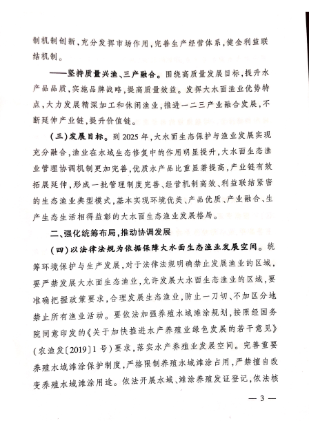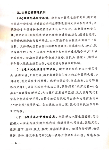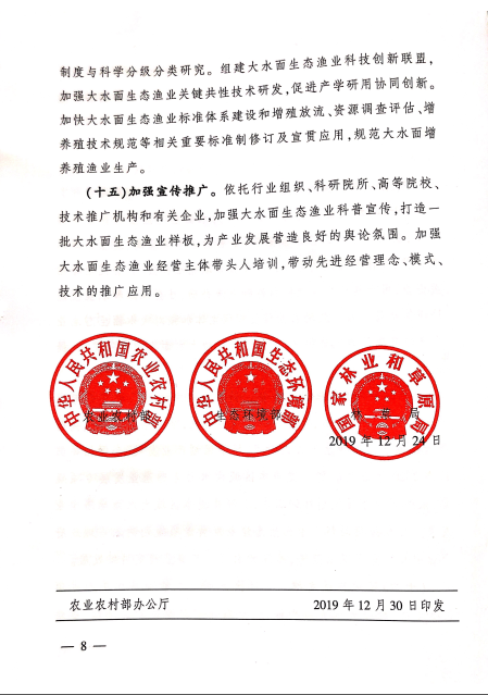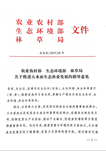 农业农村部 生态环境部 林草局关于推进大水面生态渔业发展的指导意见